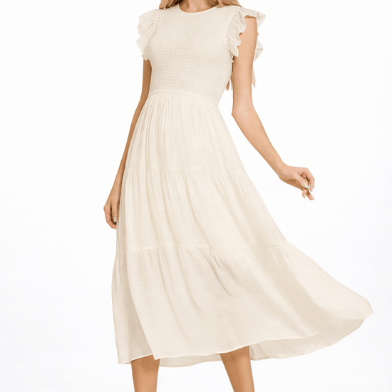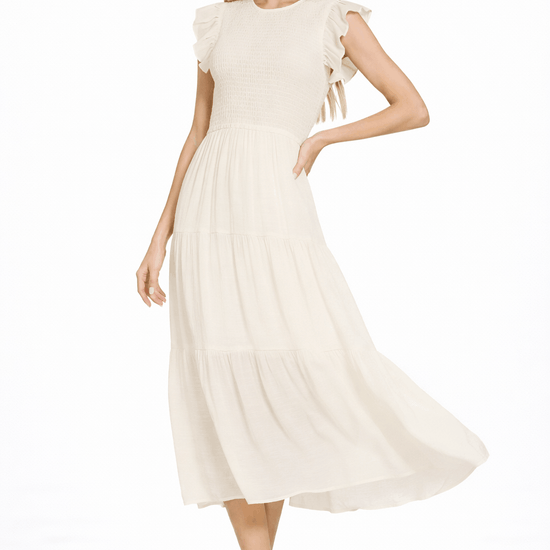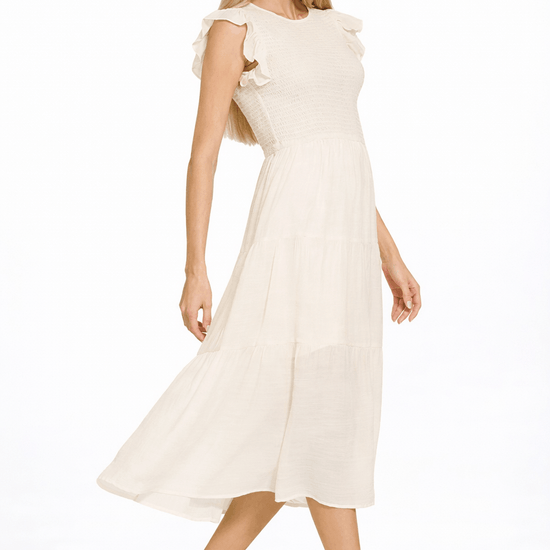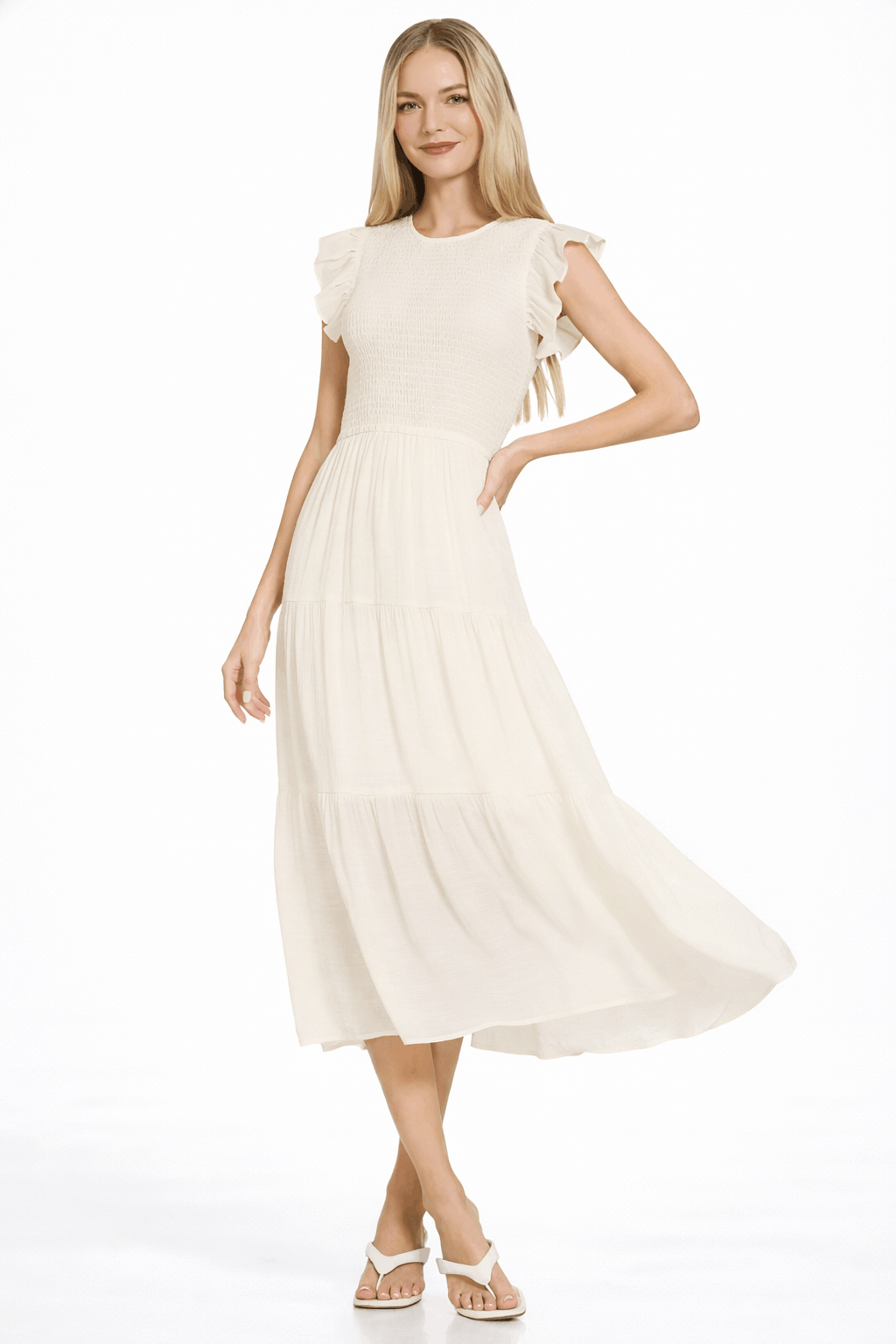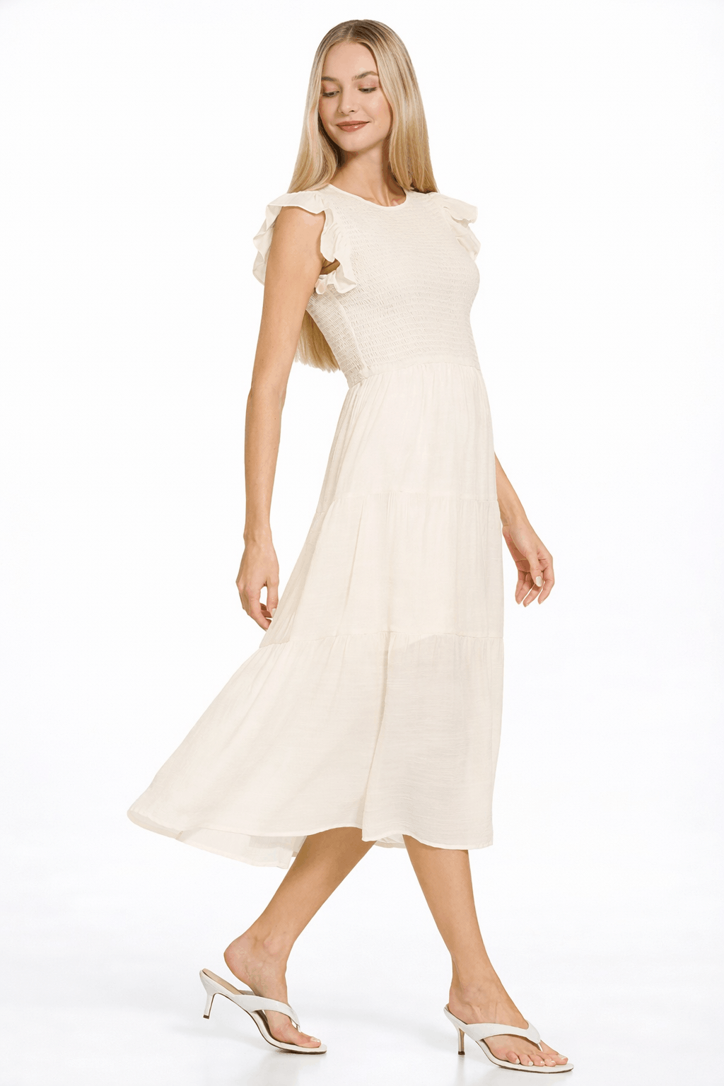 Zenana Woven Smocked Ruffle Sleeve Midi Dress