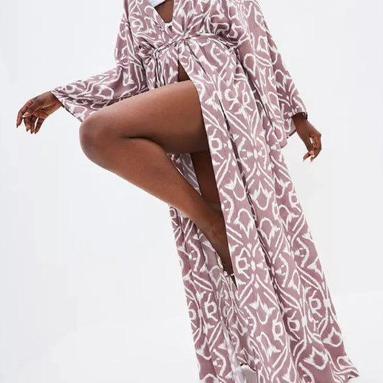Geometric Print Surplice Beach Cover Up Dress