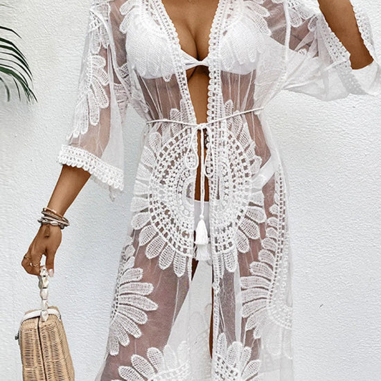 Lace Open Front Longline Cover-Up