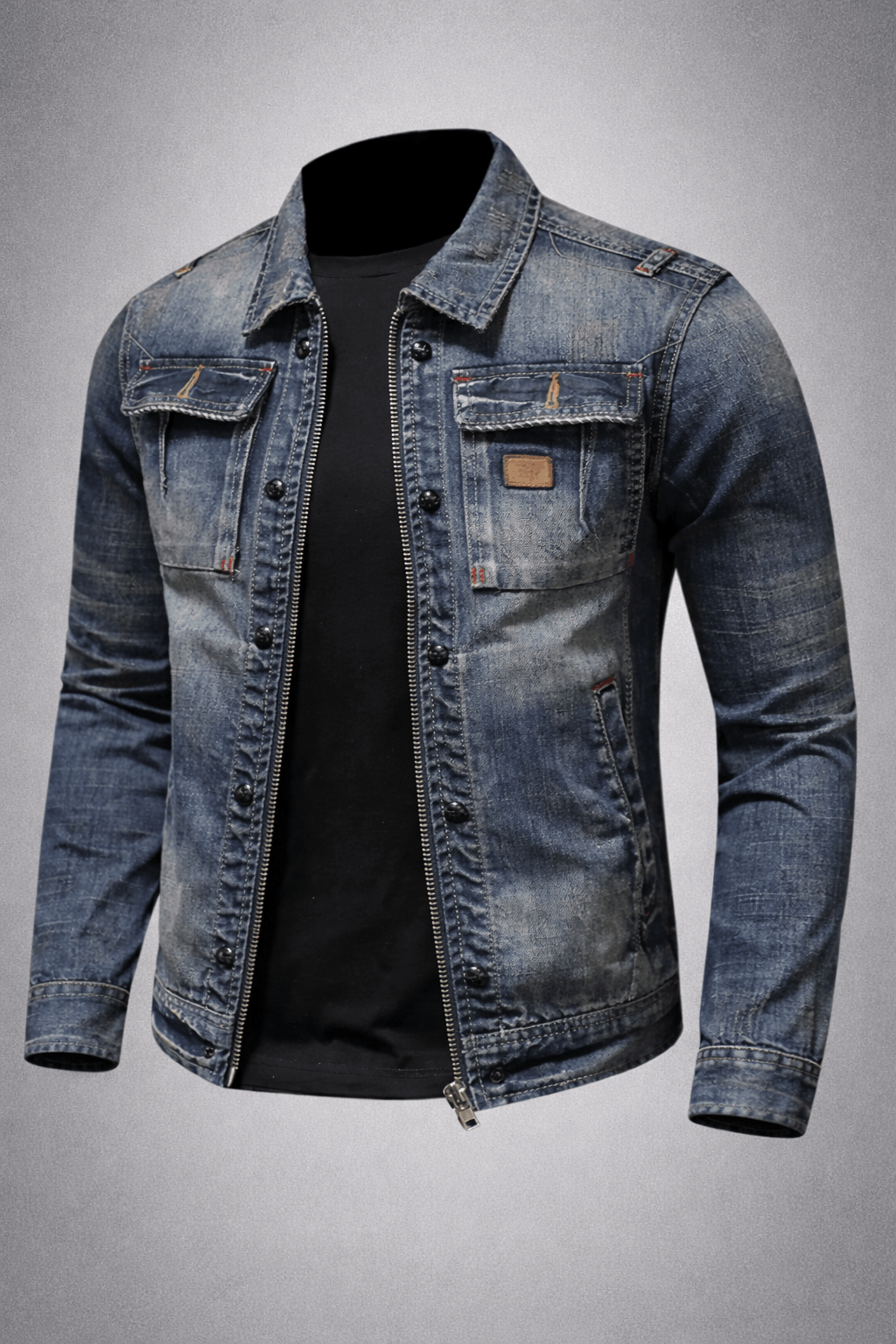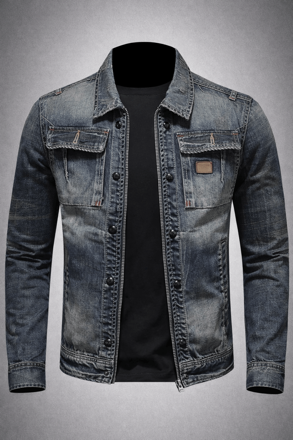 Zip-Up Chest Pocket Denim Jacket