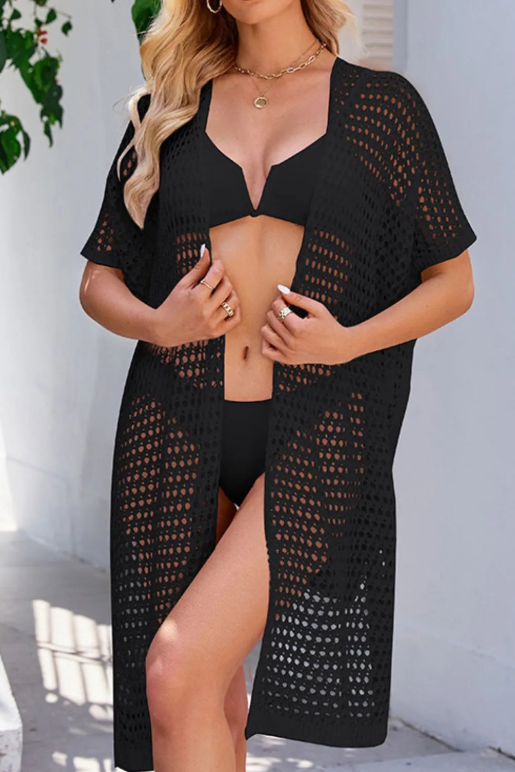 Open Front Tied Openwork Cover-Up