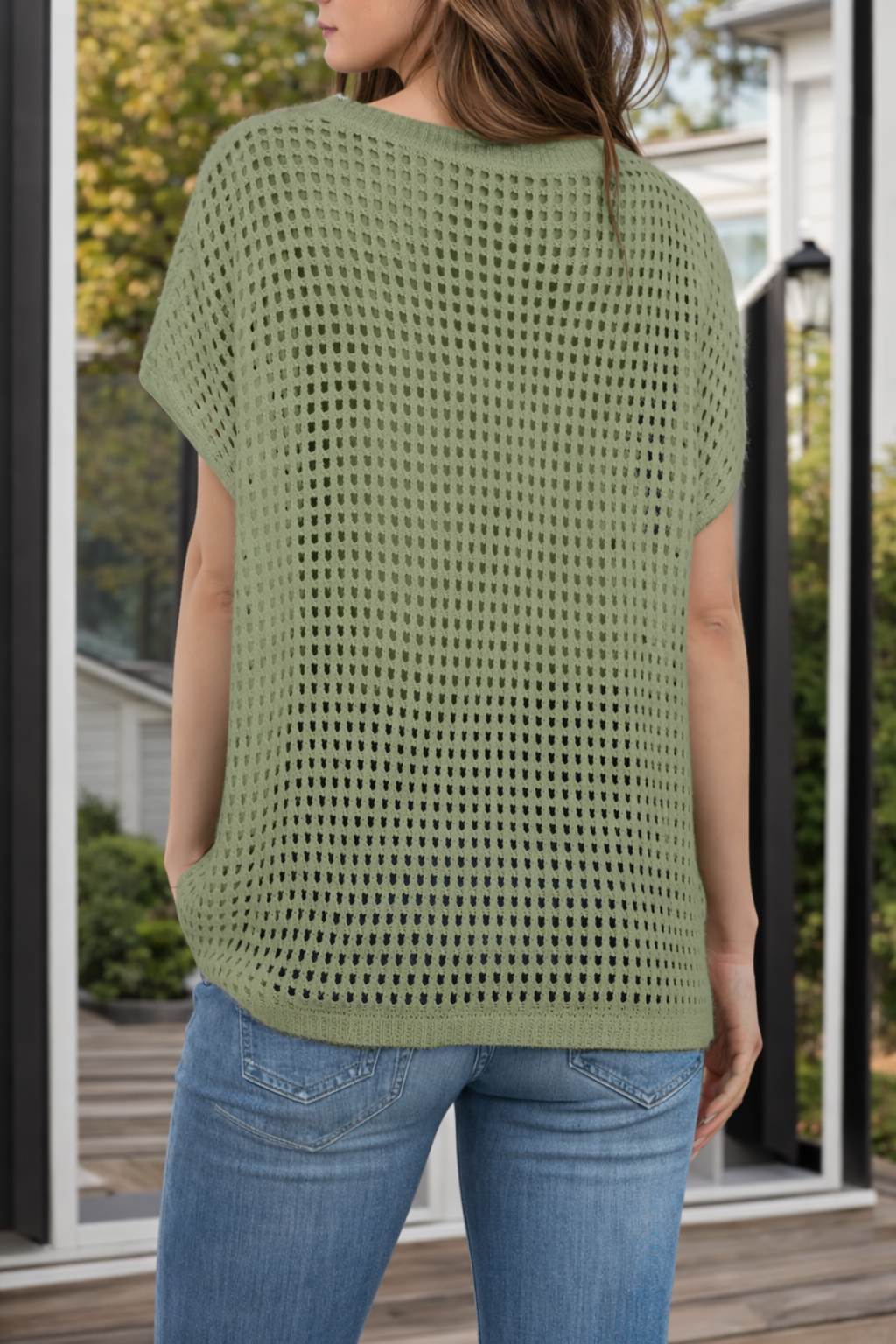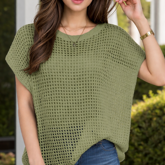 Openwork Round Neck Short Sleeve Cover-Up